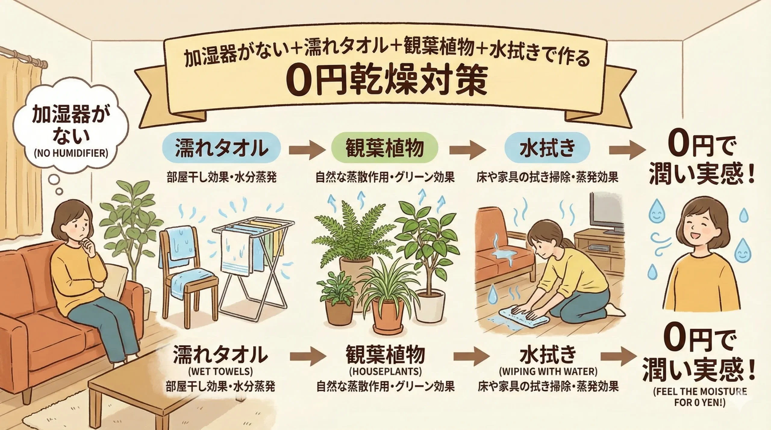 この記事では、特別な道具を買い足さずに今すぐ実践できる、家にあるものを使った「0円乾燥対策」を厳選してまとめました。