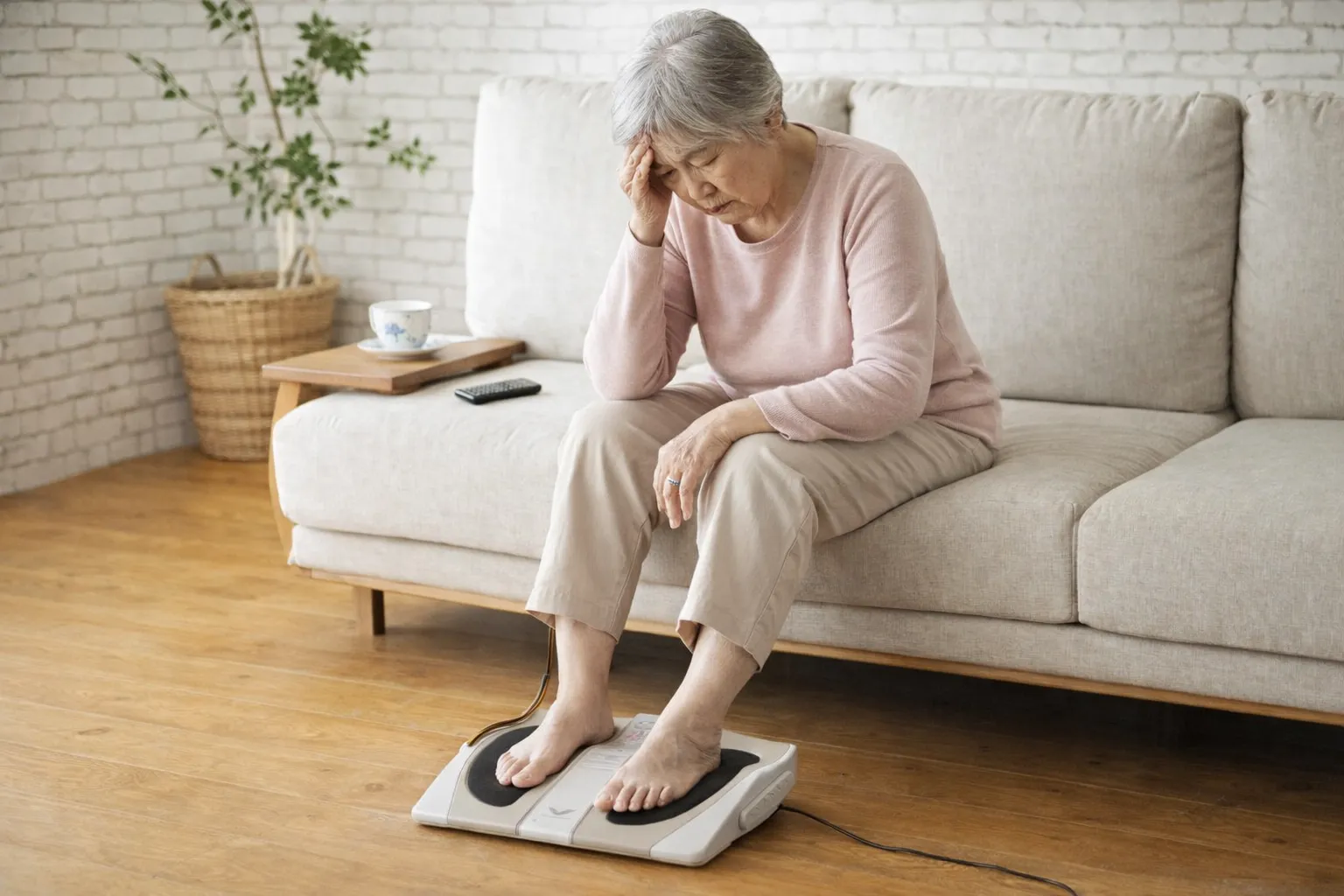 もし、手で触った時に「ビリビリ」と感じるなら、本体は正常です。 原因は間違いなく「足裏の通電環境(乾燥)」にあります。