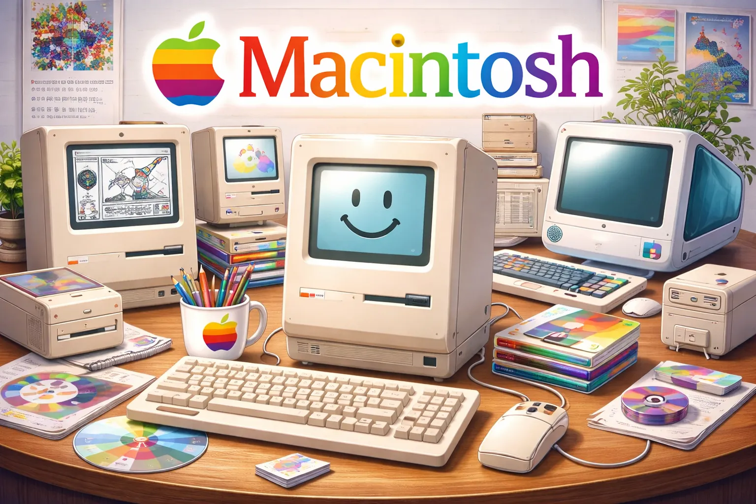 画面上のアイコンをクリックして操作するという現在のパソコンの常識は、このMacintoshから始まりました。