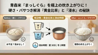 青森県産「まっしぐら」を買ってみたけれど、 ・炊きあがりが硬すぎる ・翌日になるとパサパサする と悩んでいませんか? 実はそれ、お米の品質が悪いのではなく、「まっしぐら」の特性に合わせた炊き方をしていないだけかもしれません。 まっしぐら...