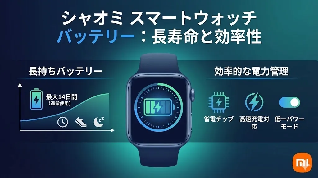 シャオミ(Xiaomi)のスマートウォッチといえば、「最大14日間持続」など驚異的なバッテリー性能が大きな魅力の一つです。